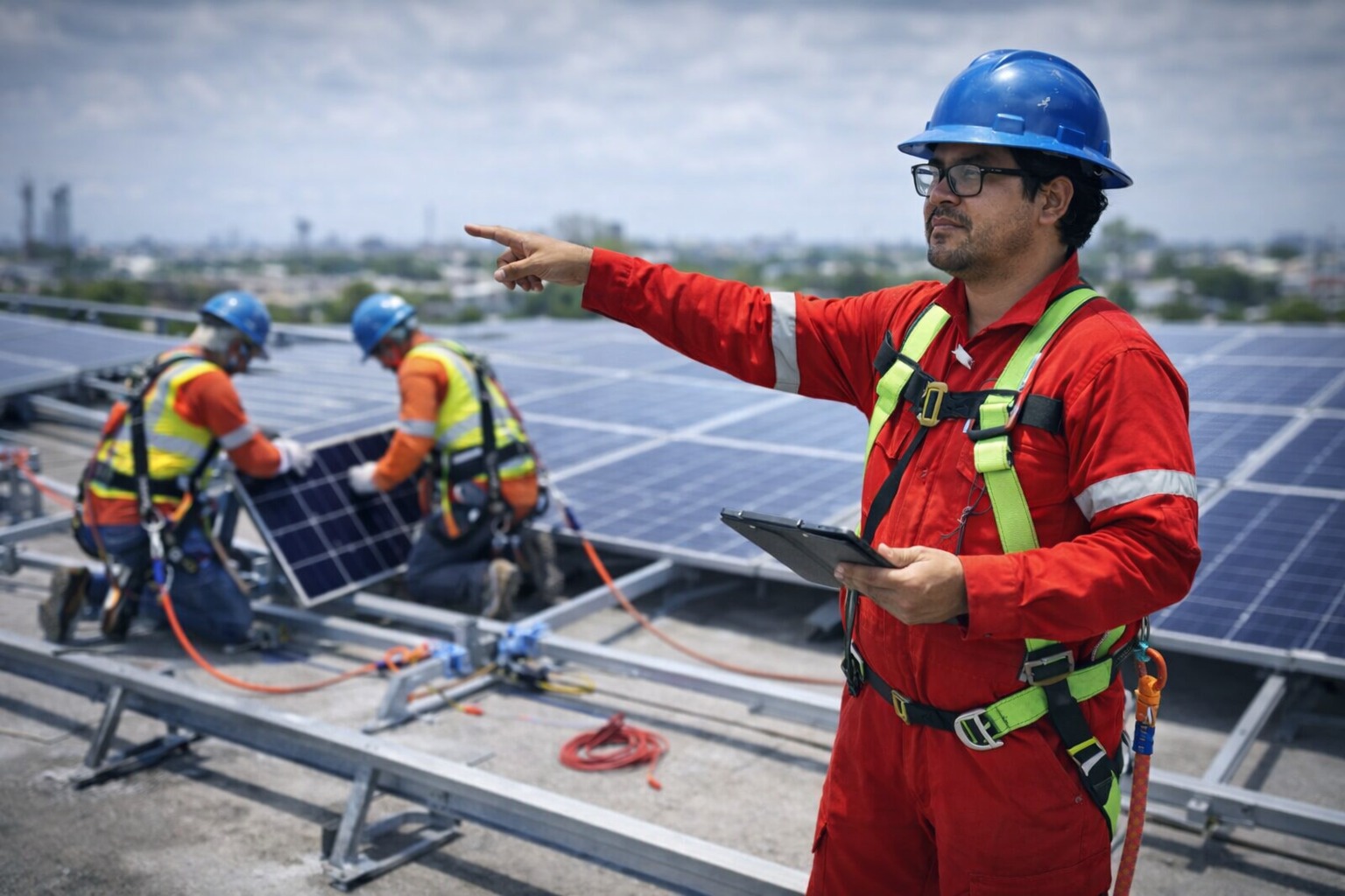 Instaladores solares, técnicos electricistas y supervisores de obra.
